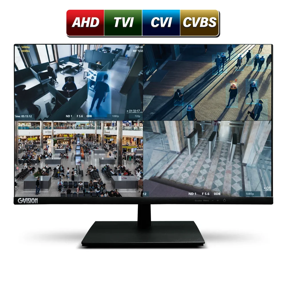 GVision 24-inch security CCTV monitor is specifically engineered for continuous operation throughout the year. These monitors boast support for HDMI, BNC CVBS HD analog inputs and outputs, as well as automatic recognition of BNC AHD, TVI, CVI. The 24″ security CCTV monitor is capable of accommodating 5MP TVI, 4MP CVI, and 5MP AHD HD analog formats.
